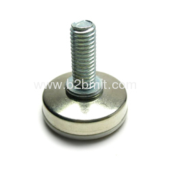 It's usually put on the feet of furniture, mainly fouction of height adjustment. Screw section is made out of steel, base sectiob is made out of plastic, various base shapes are available.