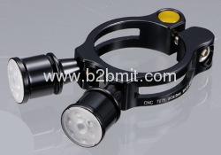 clamp with LED light available size: 31.8mm and 34.9mm. Customer can order without logo or with customize logo (w/ upcharge on logo mold cost).