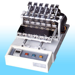 1. Test quantity G6 pcs / each time. 2. Specimen size: G22 x 3cm. 3. White cotton cloth size: G 5 x 5cm. 4. Abrasion speed: G30cpm. 5. Load: G200g /500g adjustable. 6. Abrasion distance: G100mm. 7. White cotton cloth abrasion area: G about 1 cm2. 8. Counter: G 1~9999. 9. Dimension: G45 x 65 x 35cm. 10. Weight: G55kg.