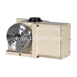 1. Clamp method: pneumatic 5-8kg/ cm². 2. Faceplate dimension: Ø 150. 3. Spindle through hole diameter: Ø 16. 4. Faceplate center hole diameter: 110. 5. Position key: 14h7. 6. Servo motor: a. FANUC: μ 2. b. MELDAS: HA33. 7. Total speed reduction ratio: 1/90. 8. Min. indexing degree: 15°. 9. Indexing accurcay (arc. sec.): ±5. 10. Repeatability (arc. sec.): ±1. 11. Max. workpiece of capacity (kg): a. Vertical (with tailstock): 40 (80). b. Horizontal: 100. 12. Net weight (without motor) (kg): 38.