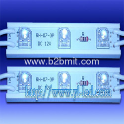 1. Size (L x W x H): 76 x 13 x 8mm. 2. LEDs: 3 LEDs/ module. 3. Power: 0.25W. 3. Voltage: DC 12V. 4. Work temperature: -20℃ ~ +80℃. 5. IP rate: NO. 6. LED shape: 5mm super flux. 7. LED angle: 90deg. 8. Color available: red, yellow, blue, green, white. 9. Life time: 50000HR.